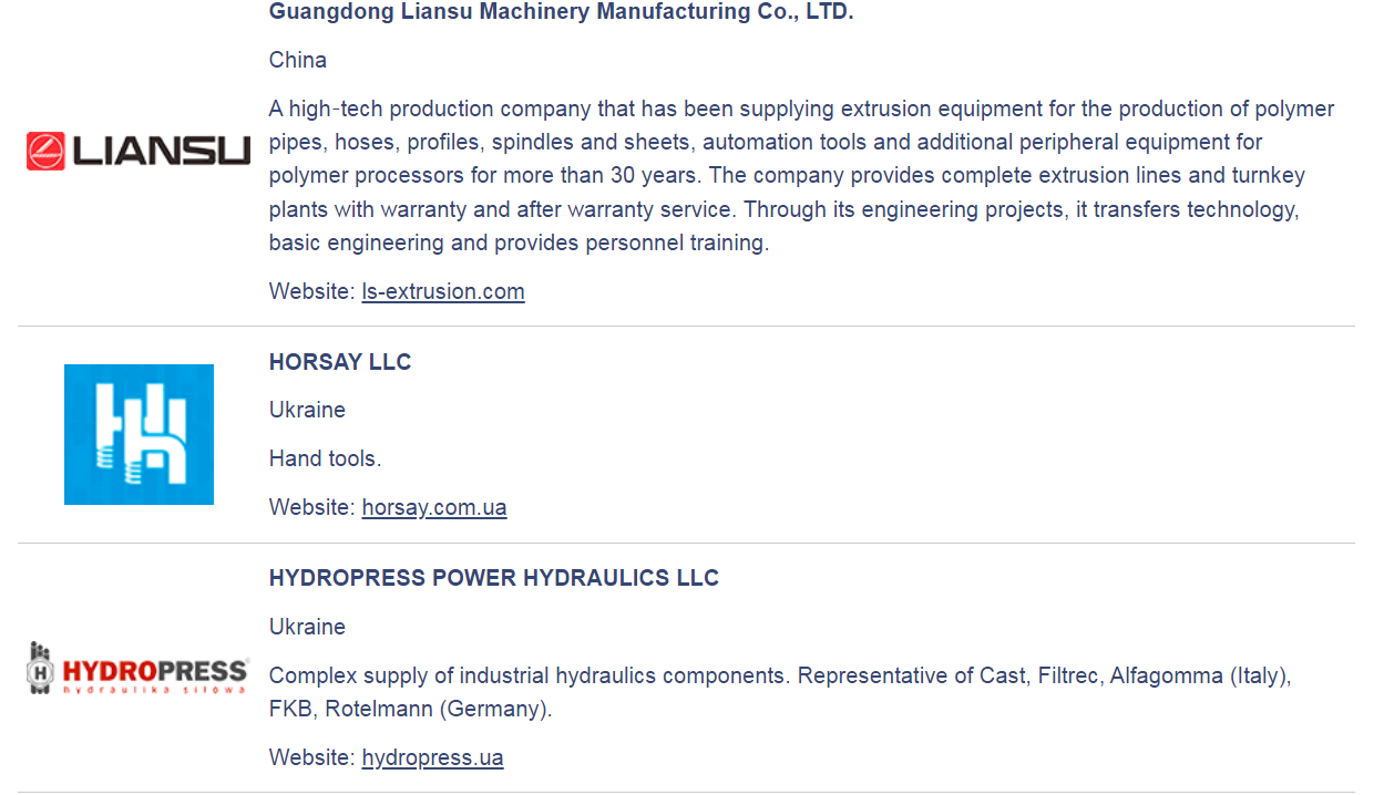 参加专业展览使公司有机会发现某些工业领域的世界新奇事物并展示自己的发展,确保其产品的经济效益和适销性。Plast Expo UA 是乌克兰唯一一个汇聚塑料和橡胶加工领域专业人士的展会,涵盖从原材料生产、新型国内设备模型的创建到技术流程自动化的各个领域。在乌克兰市场根据欧盟要求进行调整的时期,Plast Expo Ua让每个处于工厂和企业全新制造、部分现代化或整体升级起点的人在各种产品中找到自己的正确出路,市场上提供的商标和技术:所有值得关注的东西都将在 Plast Expo UA 展会上实时呈现。