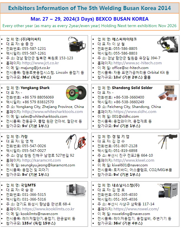 您想成为韩国焊接、切割和激光设备市场的领先者吗?釜山和庆尚南道历来是汽车、钢铁、造船、港口和建筑业的中心,在韩国经济中占有重要地位。韩国釜山焊接展是焊接及相关行业展示其能力的机会之地。您可以在展会现场见到环保和自动化的新产品。此外,您还可以见到具有强大购买力的买家、制造商和经销商,这可能与您在焊接设备、材料、切割设备等方面的销售业绩直接相关。